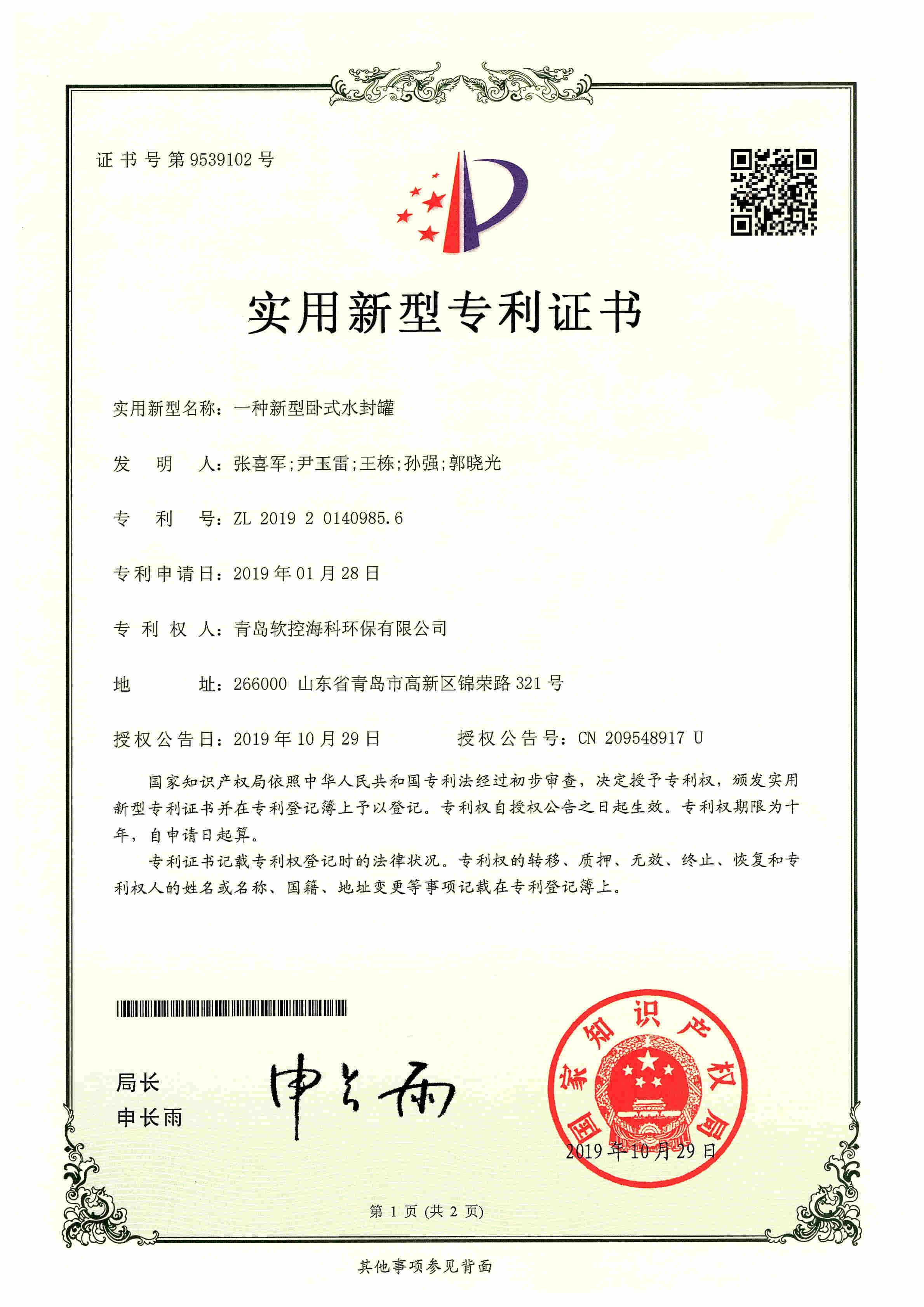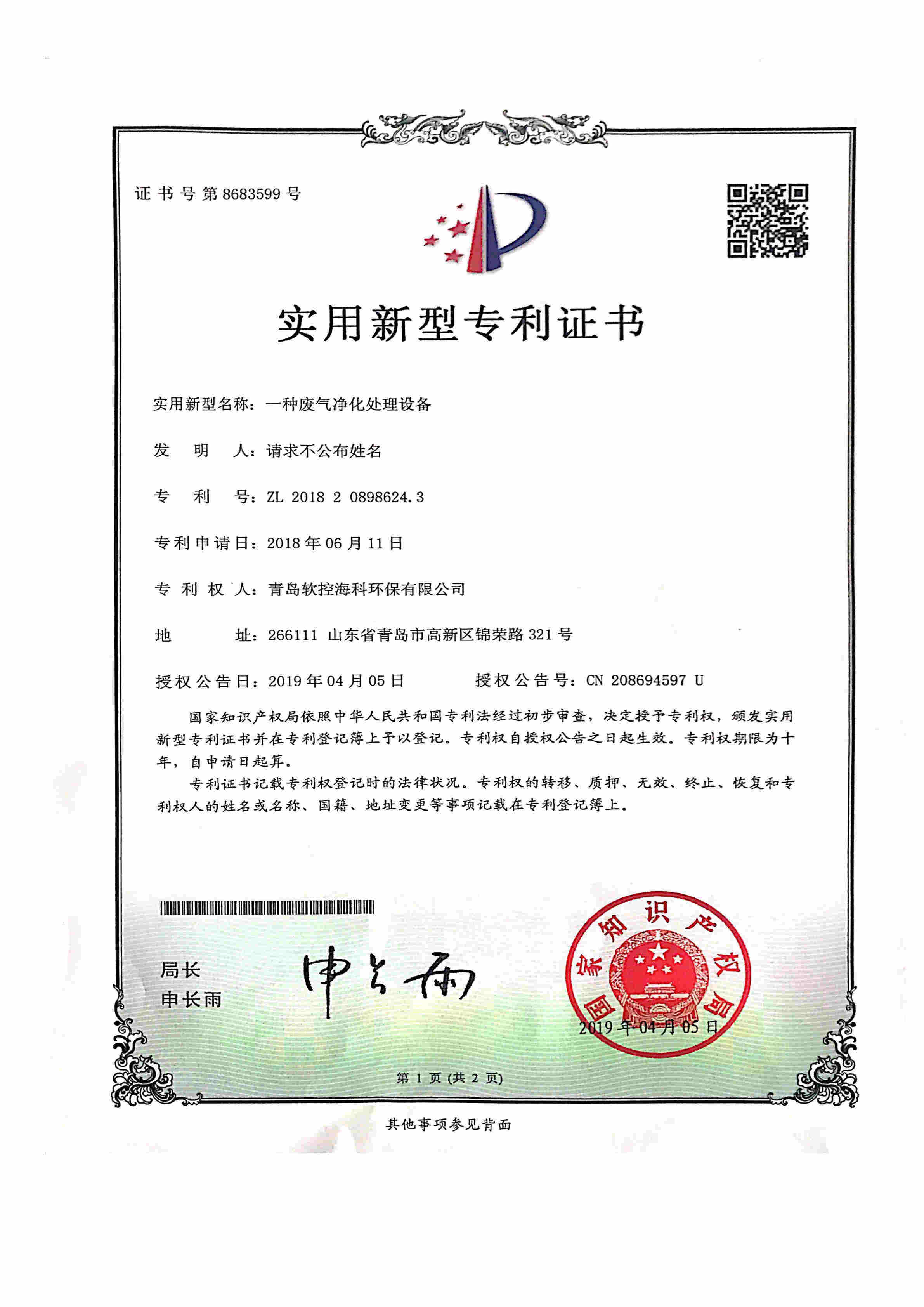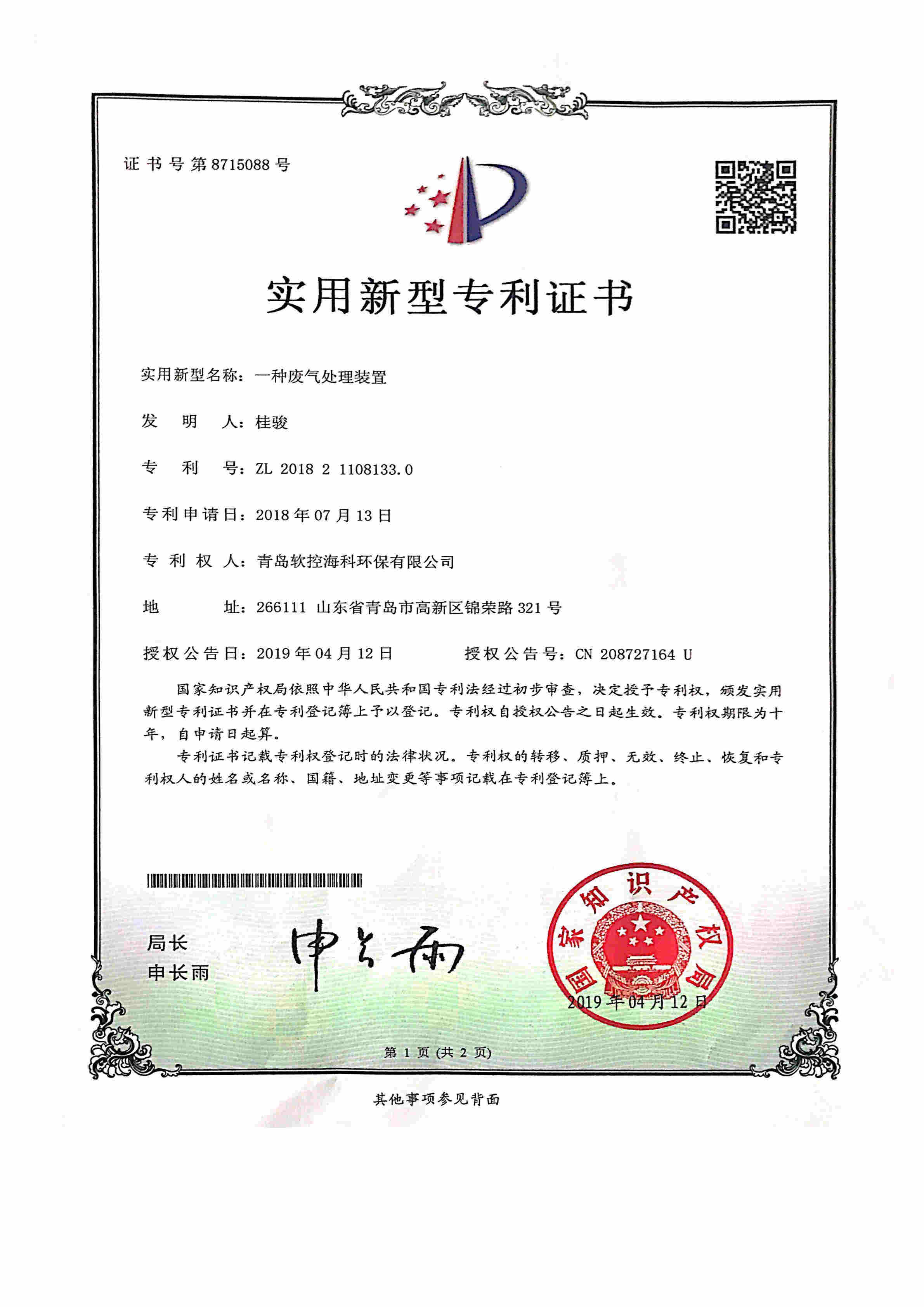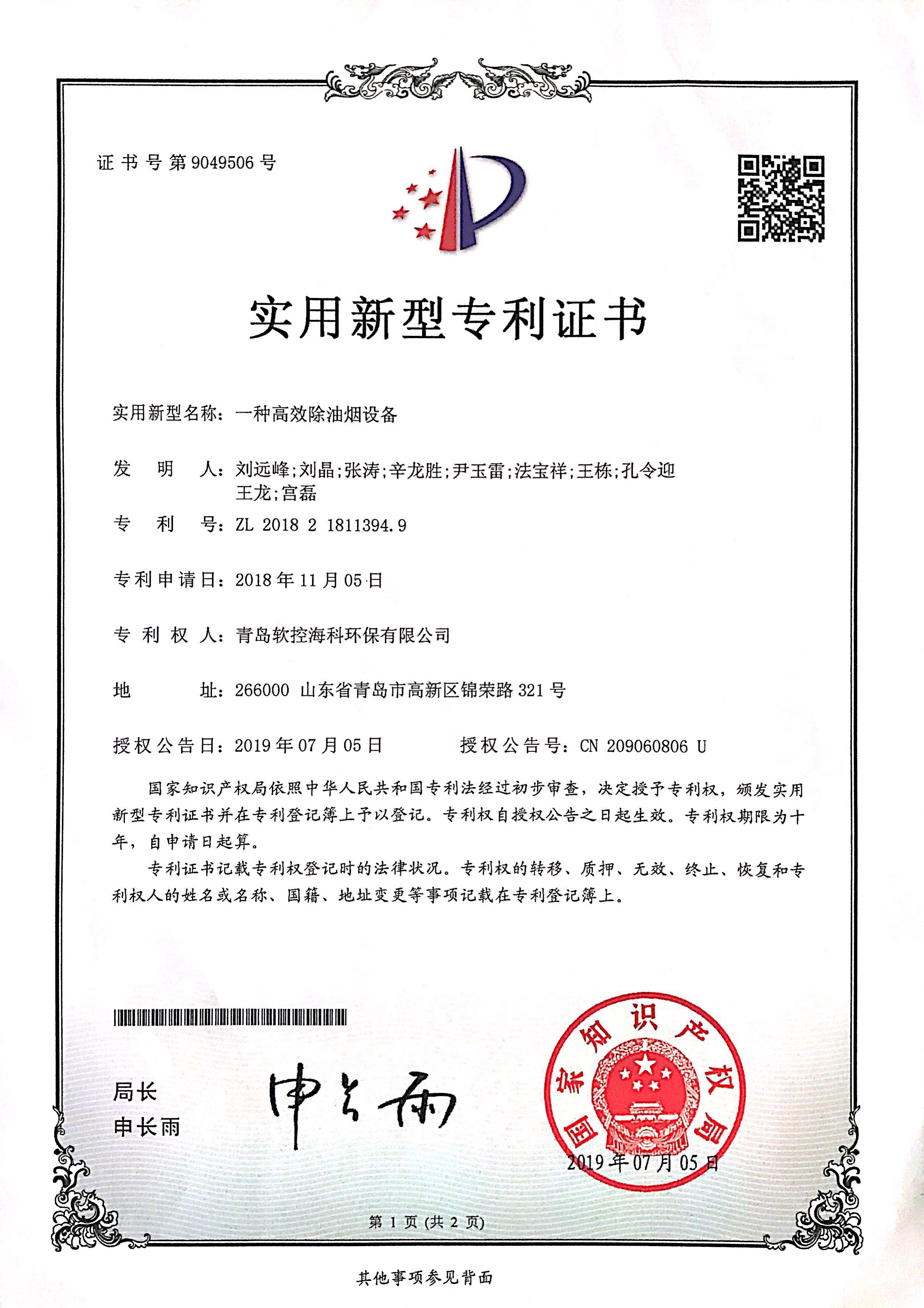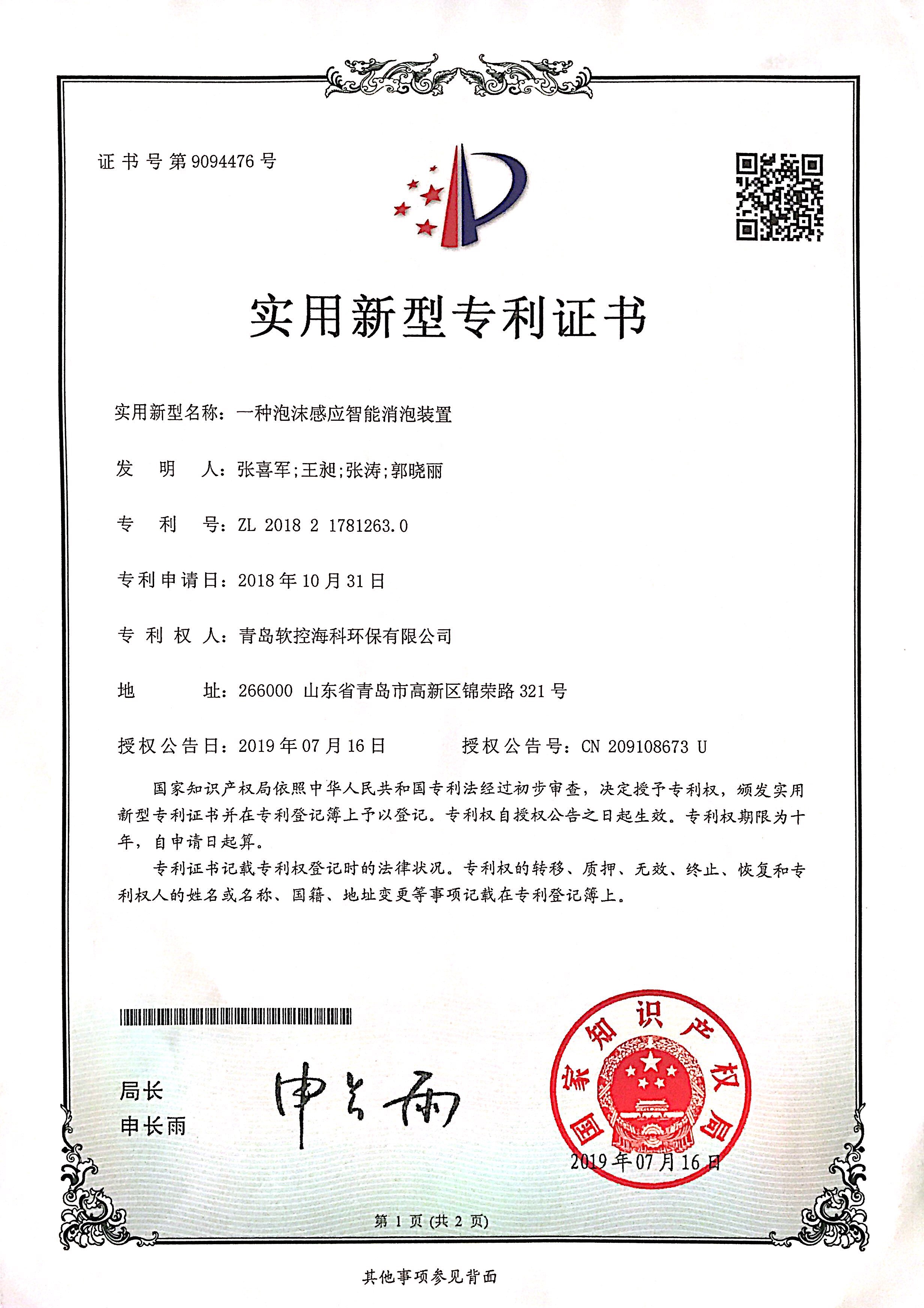 拥有环保行业多项专利