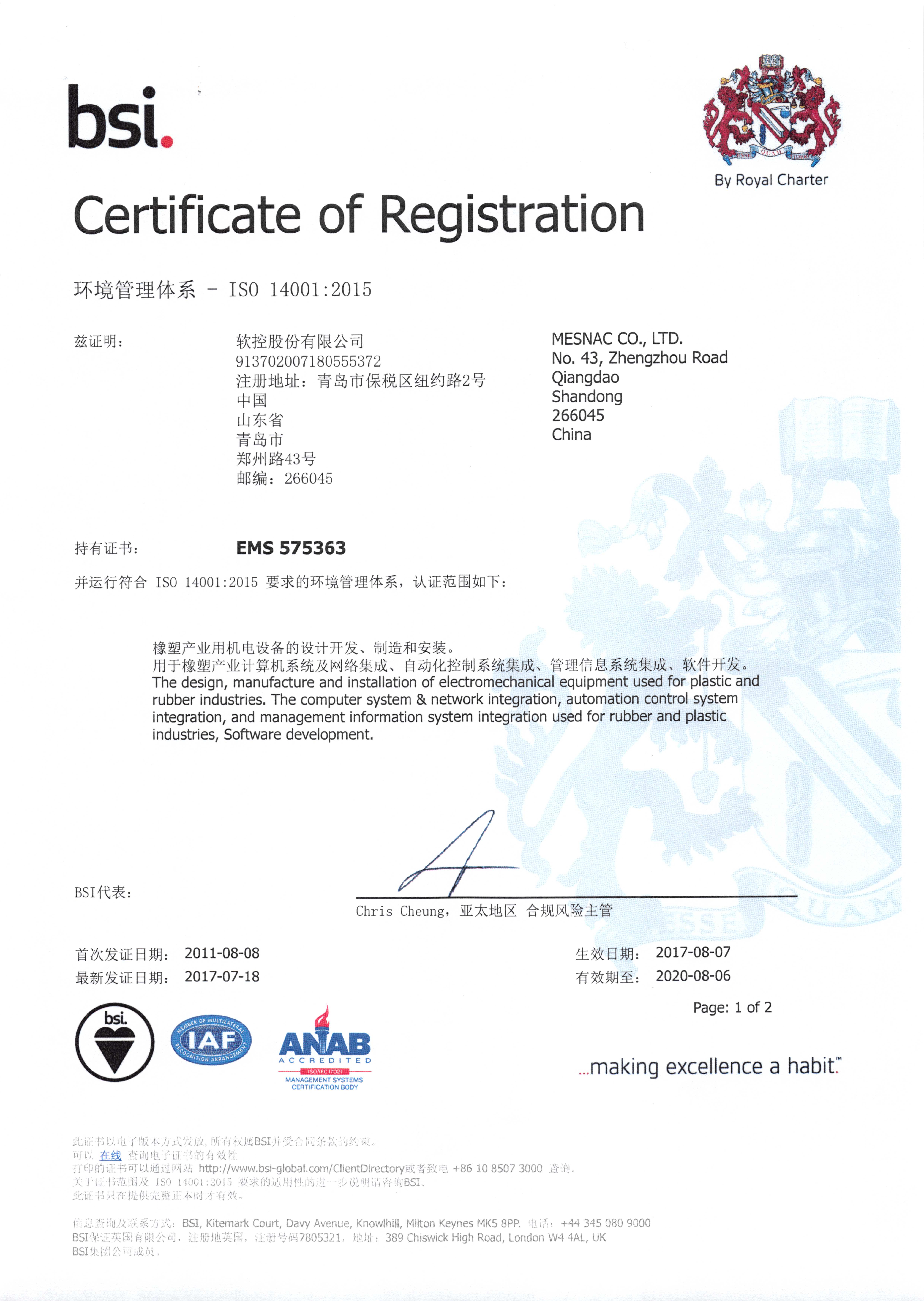 环境管理体系证书