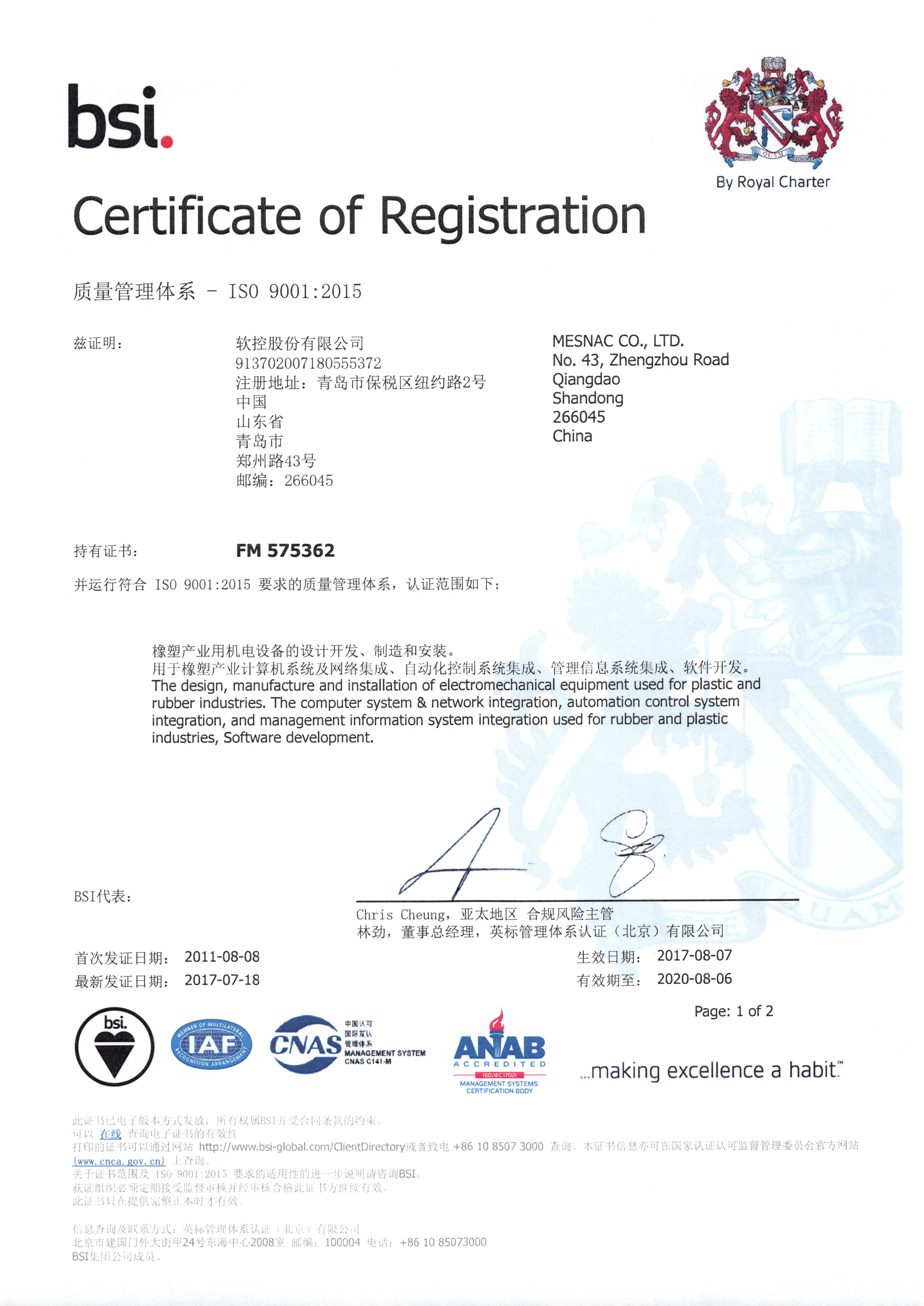 质量管理体系证书